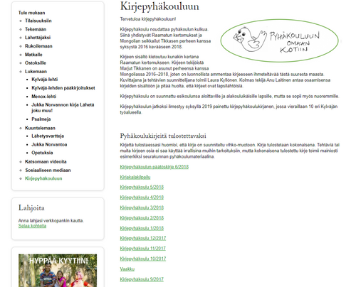 - Lähetysyhdistys Kylväjän kirjepyhäkoulu: www.kylvaja.fi/tule-mukaan/kirjepyhakouluun